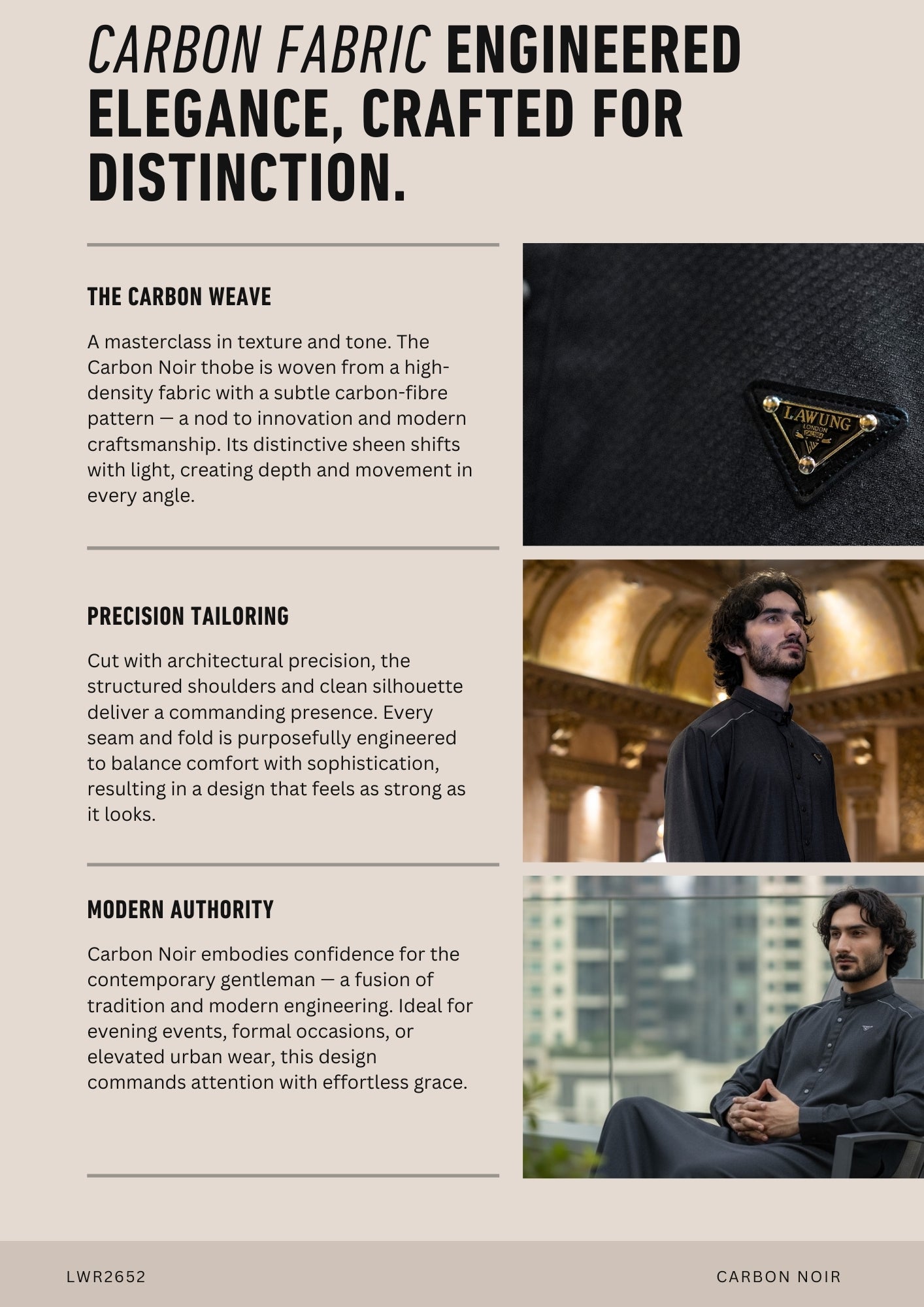 The smooth, high-quality fabric offers comfort, breathability, and durability, while the minimalist detailing enhances its sophisticated appeal. Finished with a sleek button placket and subtle branded accents, this thobe is understated yet unmistakably luxurious.
