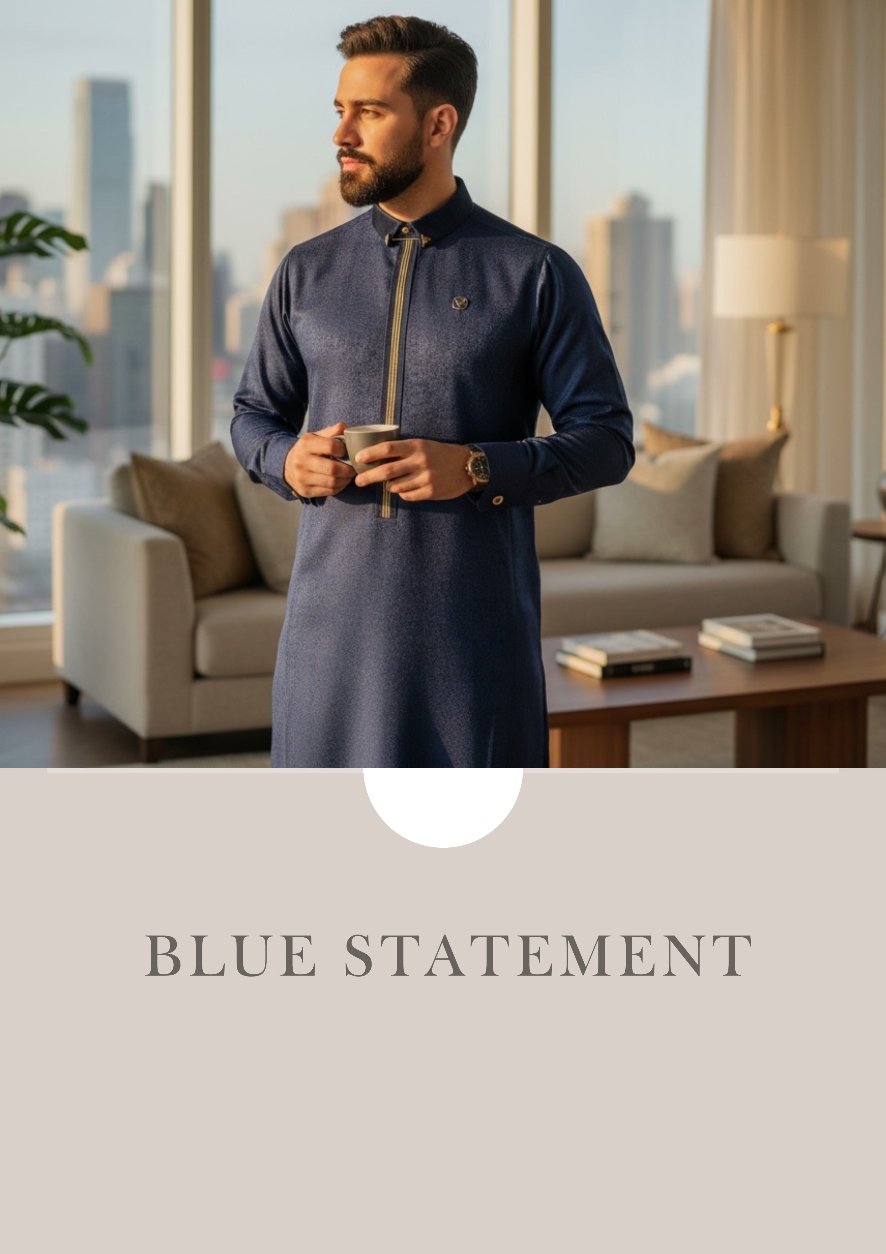 Sophisticated and timeless, the Signature Midnight Blue Arabian Thobe is designed for those who appreciate refined detail and modern elegance.